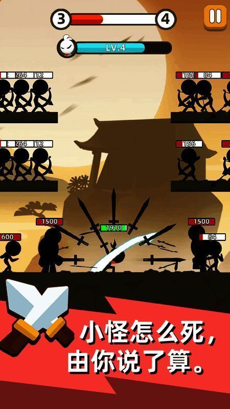 1、游戏简单的玩法,玩家只需要控制你的火柴人移动,点击屏幕进行攻击,躲避敌人的进攻即可+