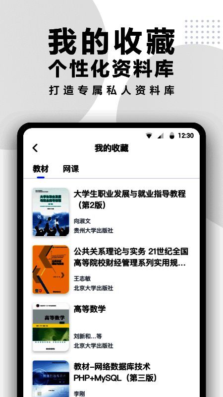 常用教材、网课收藏,打造个性化学习辅助工具。