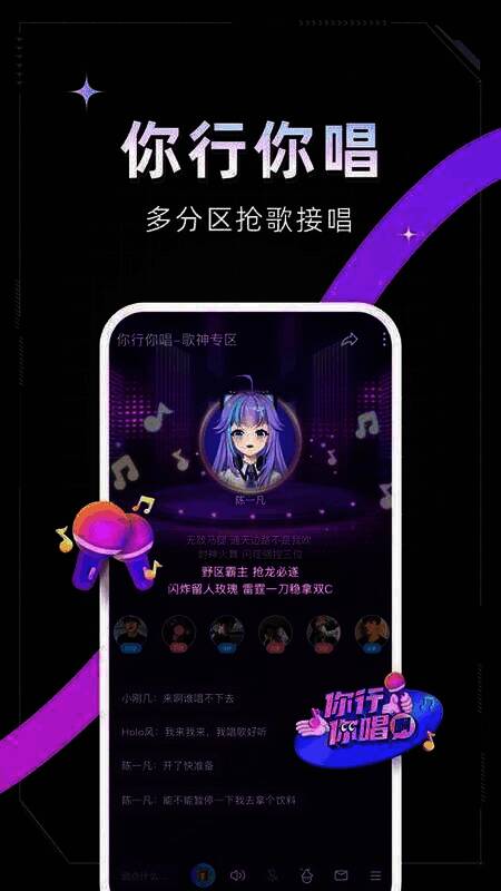 2. 你行你唱——多分区玩抢唱,即便跑调也能畅快歌唱。贴心的帮唱机制,助你快速找到音乐玩伴。