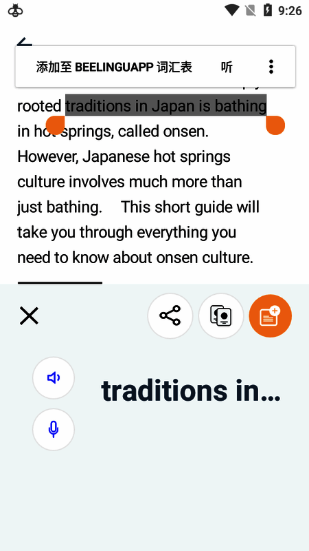 1. 实时语音翻译对比:Beelinguapp最显著的亮点是其实时语音文字翻译对比功能。用户阅读故事时,能同时看到原文和译文,还能听到译文发音。这种视听结合的学习方式,有助于学习者更好地理解句子结构和词汇用法,提升听力和口语表达能力。