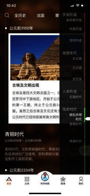 想更加生动的学习历史知识吗?这款全历史app是一款能够通过别样的角度像大家讲述历史知识的软件,软件的设计非常精巧,内容也非常的丰富。你可以查看查看全历史的时间轴,从宇宙大爆炸到现代文明世界,所有的一切都绘制在这个时间卷轴之上。