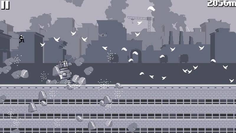 《Canabalt》是一款超刺激的黑白像素风格跑酷手游。它有着丰富的挑战关卡,能让玩家享受极简操作的乐趣。