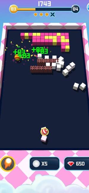 单手就能轻松操作游戏,点击屏幕并拖动屏幕中的小球便是全部操作。游戏没有时间、步数和玩法限制,一切由玩家主宰。玩家可随时放下手机去做其他事,再拿起时游戏依旧在等。玩法丰富,既可以一次爆炸式毁灭所有像素方块,也能慢慢细心地敲掉一两个,游戏节奏和全场都由玩家掌控。