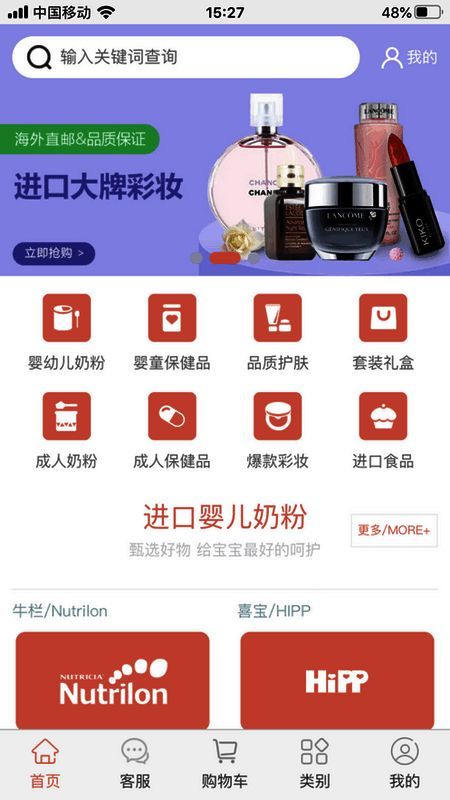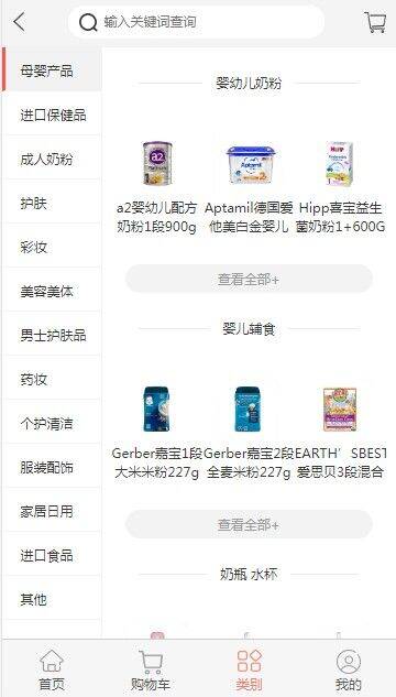 2、商品品类丰富,涵盖婴幼儿奶粉、保健食品、大牌彩妆护肤品等。