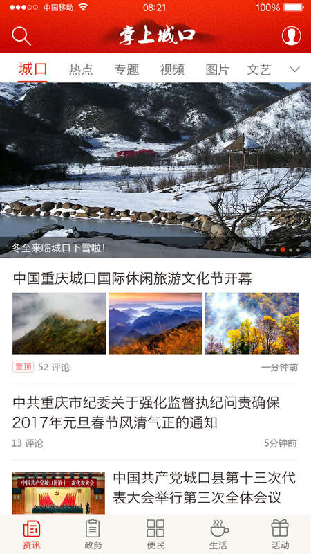 1、打开掌上城口资讯列表,一眼就能看到城口本地新闻。