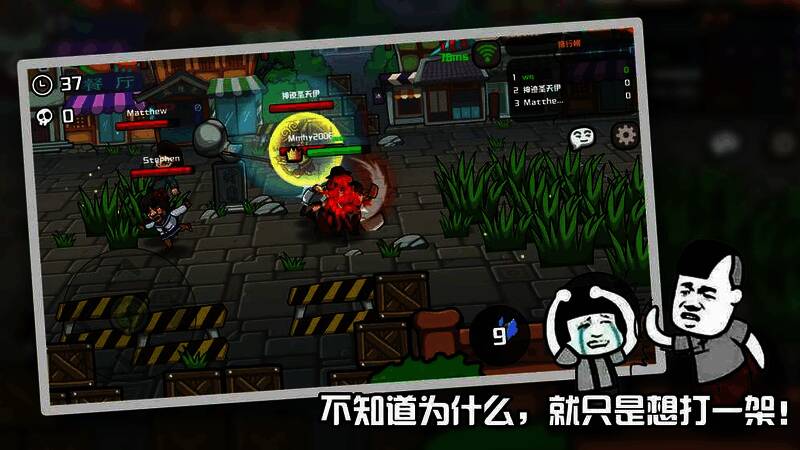 《格斗王大作战》是一款极具魔性的街机格斗手游。它玩法独特又有趣,只要见到人就能开启战斗,要是打不过还能喊上好友一起群殴对手,乐趣瞬间翻倍。而且游戏里没有金币、钻石、等级这些常规设定,纯粹就是为了好玩!