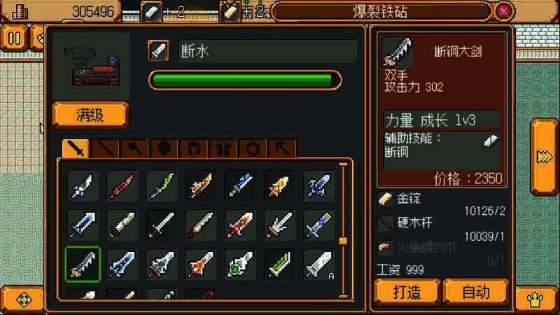 玩家将投身于像素风格的模拟经营游戏中,轻松趣味的玩法带来畅爽体验。经营好武器店,有望成为富甲一方的土豪。在经营之余,还能开启冒险,击杀怪物、寻找宝箱、挑战BOSS,收获欢乐与大量战利品。游戏有繁杂任务系统和海量武器装备,200 + 装备可供打造,随机野外探险惊喜不断。