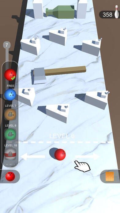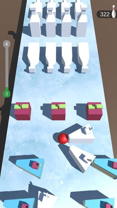 玩家要找出能让所有瓶子粉碎的最佳投球方式,注意保龄球运行时别碰彩色砖块,碰撞和弹射会让力度渐弱,各关卡都需用心操作。游戏提供摇杆和单手移动两种操控,可依习惯选择,难度颇高。