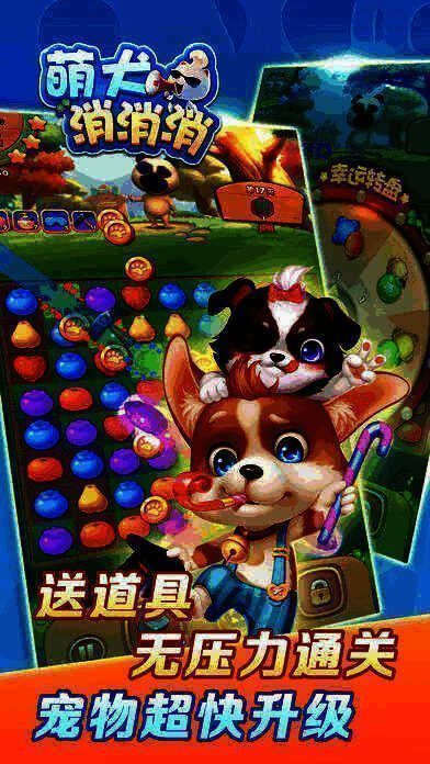 闯关收集养成道具,喂养你的专属萌犬。各种特色狗狗,如呆萌二哈、憨厚八哥犬、可爱博美等陪你闯关。游戏还有订单关卡、狗狗关卡、冰棍关卡、草地关卡等多种好玩的三消玩法模式。