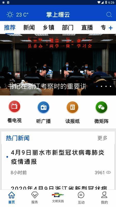 掌上缙云是缙云本地的生活融媒体服务平台,设有新闻、乡镇、直播、专题和短视频等功能板块,还有看电视、听广播、读报纸和微矩阵等娱乐功能,欢迎下载体验。