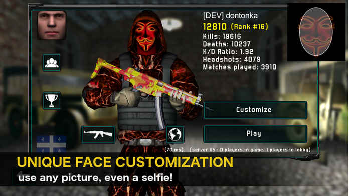 ● 可使用喜欢的人物图像甚至自拍照定制3D战士头像,个性十足。