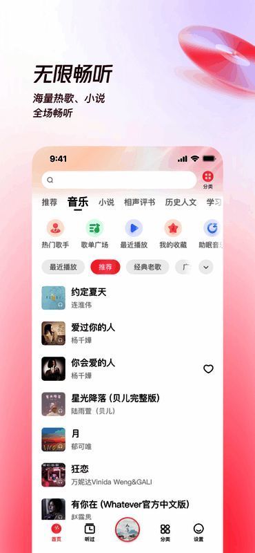1. 海量资源:拥有海量小说,涵盖都市爽文、悬疑惊悚、言情穿越、玄幻修仙等多种分类,全部可免费畅听。