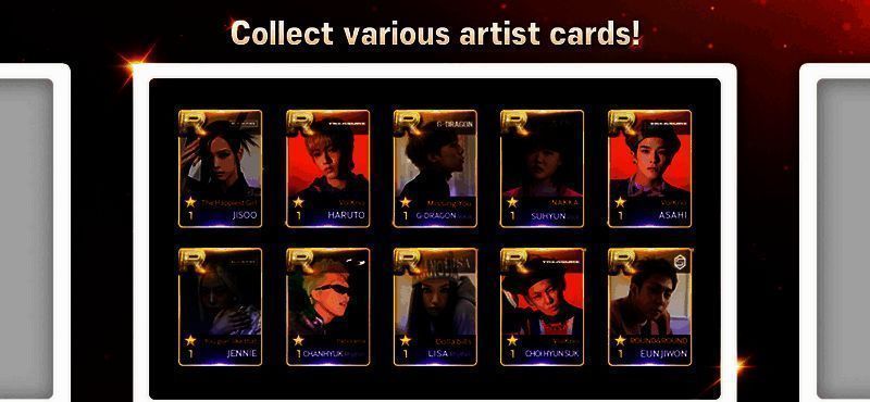 游戏涵盖YG ARTISTS的出道成名曲、人气歌曲以及最新歌曲。玩家能在丰富多样的音乐陪伴下尽情享受游戏乐趣。此外,玩家可以收集各成员的卡片,还有机会升级换取更精美、能力更强的卡片,并且可以分主题收集YG ARTISTS丰富酷炫的卡片。
