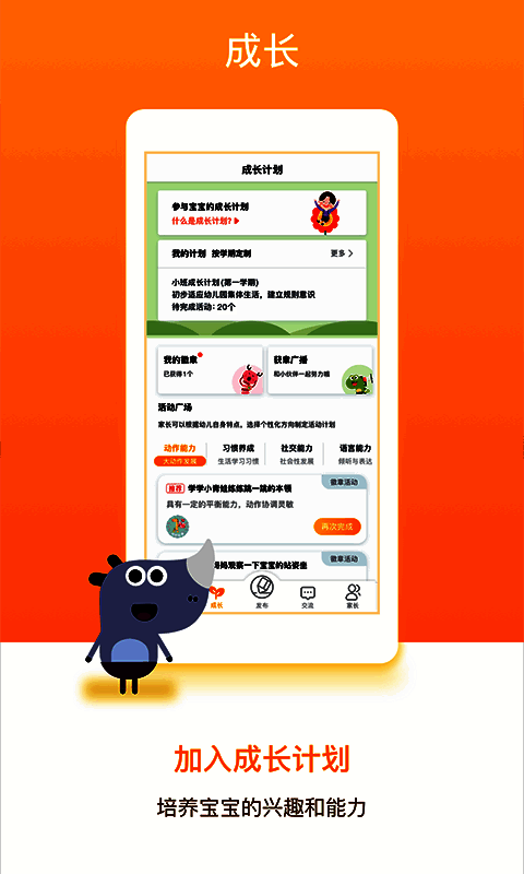调查多领域,助力孩子高效学习成长;做任务、玩游戏,增强幼儿与教师互动,提升表达能力;徽章奖励,独立完成任务可获徽章,提高孩子独立性;互动交流,教师和家长通过软件交流,共享孩子信息;任务集合,老师下达的任务在同一张表清晰呈现;释放社区,可在社区写下孩子想法,拓展思维。