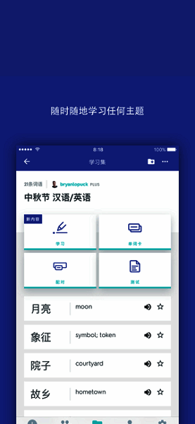 Quizlet拥有庞大的学习素材库,其中包含其他用户分享的上百万组学习卡片和学习集。用户可以根据自身兴趣选择合适的学习内容,拓展学习资源。同时,Quizlet还配备搜索功能,方便用户快速找到所需的学习素材。