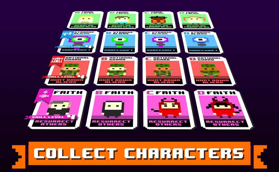 5、解锁特殊技能和环境:警察能降低车辆速度,科学家可让你从更大的车流波开始游戏,外星人能改变场景设置,还有更多不同特殊技能的角色类别等待解锁。