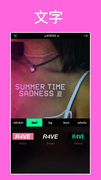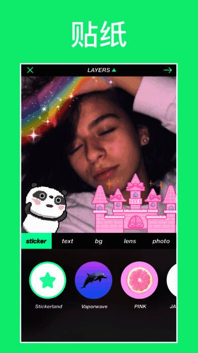 • 拥有海量贴纸资源,涵盖蒸汽波、日系、电子、复古等风格,还有色彩大胆的滤镜和富有质感的文字样式,助你全方位打造独一无二的作品!