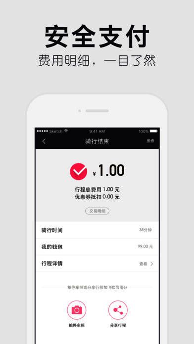 2、全民健身,享受健康:在全民健身时代,加入飞歌单车,随时随地取用车辆。