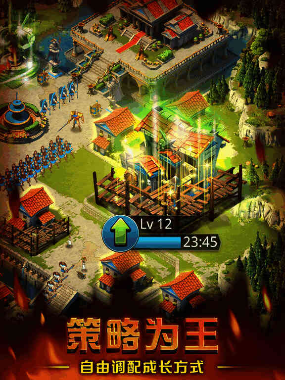 - 建设城市,用各种城防武器组建防御,击溃入侵者;组建精锐军队,与志同道合的朋友组成帝国,在与其他帝国的争霸过程中建立深厚战友情谊。不同的建设过程带来多样化的体验,单体成长、团体成长、协作、对抗,尽享策略游戏的快感。