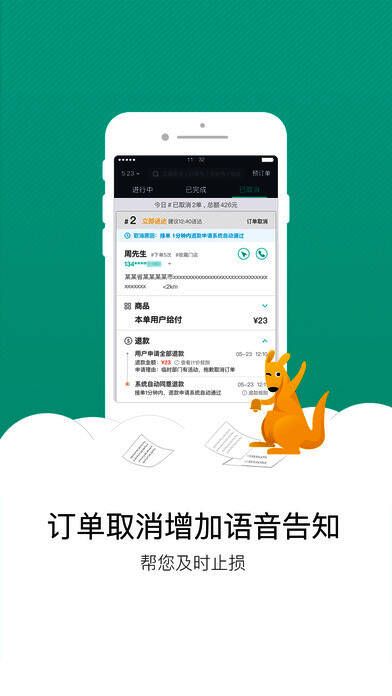 1、订单管理:可随时随地接单、处理催单和操作退单;