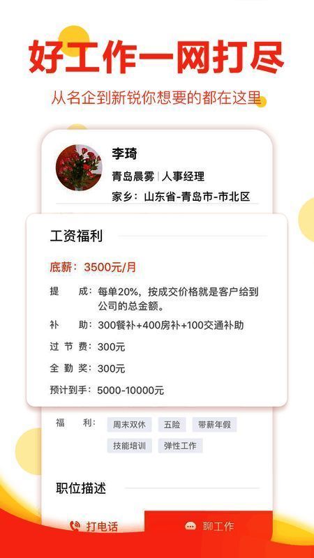 【海量职位】提供全职、兼职,应届生专区、名企专区、大学生专区、网红专区等多种选择;