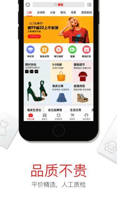 《卷皮折扣》是一款超实用的网络购物软件。这里有着海量折扣特卖的优质商品,任你尽情挑选。它保证商品为正品,让你购物更安心。同时,还有各类秒杀促销活动等你参与。赶紧下载体验吧!