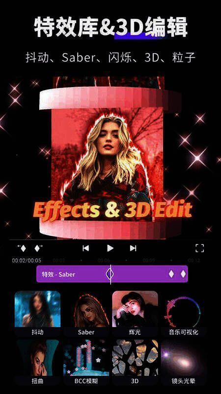 3. 特效丰富:软件内置了上百种视频特效和动态贴纸,像火焰、激光、狂风等特效,能让用户的视频作品变得更加酷炫夺目。