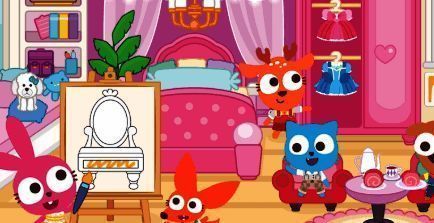 1、融合数字涂色和过家家游戏,拥有上百个互动道具。