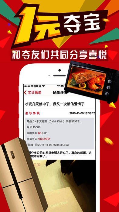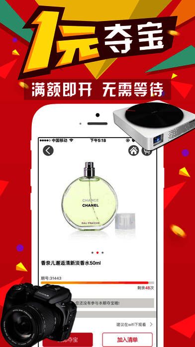 - 【独特原理】把商品所需参与人次拆分成多个小幸运号,当参与人数达标,会用固定公式公平算出幸运者。持有幸运号码越多,中奖几率越大。