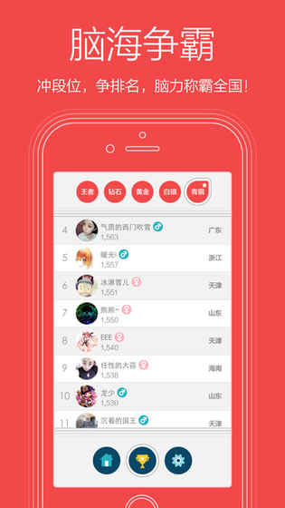 《脑洞大开》是一款极具创意的脑力比拼游戏。它界面简洁,内置众多竞技小游戏,规则简单却需多练习。玩家能和全国玩家实时对战,在排行榜上冲击“最强王者”。其超简约设计风格老少皆宜,适合各类玩家。v1.5.6 版本更新后,增加了分享途径、索要体力功能、地域排行榜、个人生涯统计及游戏礼包活动。
