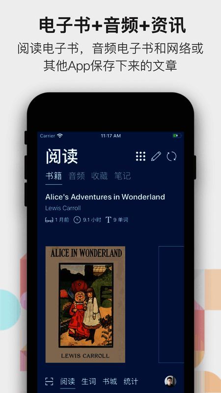 2.支持图书阅读,兼容各种音频格式文件与网页,学习资源众多。
