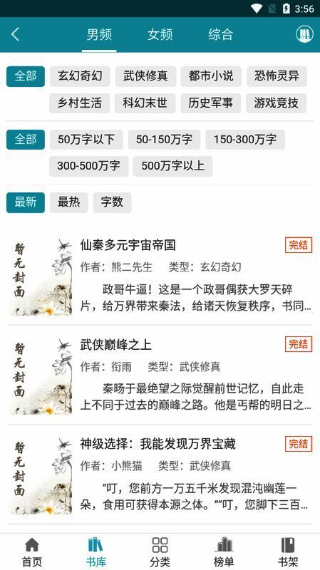 2、小说更新进度信息清晰可见,涵盖更新后的小说类别,让找书更有信心。