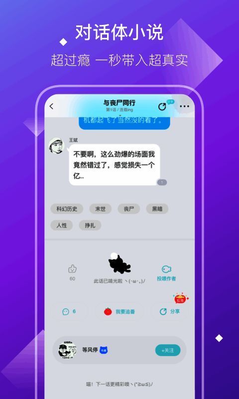 “快点对话式小说”是一款在年轻人中火爆全网的小说神器。它采用新颖的对话式阅读方式,让你看小说就像聊 QQ、看微信,轻松点击就能弹出对话小说,还能发布表情包和进行评论。