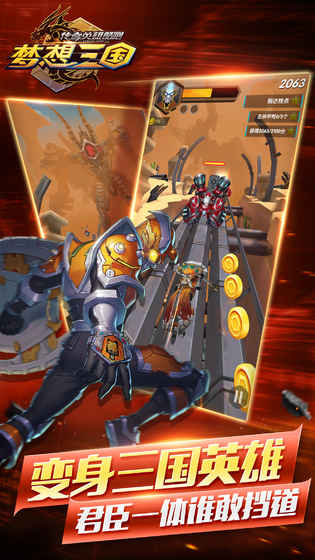 这款游戏是腾讯视频14亿播放量的超人气影视剧《梦想三国》正版授权手游,由年轻有活力的泰尼游戏团队研发。它致敬儿时英雄梦想,将全新三国英雄形象和变身战斗元素融入酷跑,玩家可积攒英雄能量变身传奇英雄,释放大招击退怪物。科技感未来场景带来新奇体验,随机道具和军师特技增添乐趣。