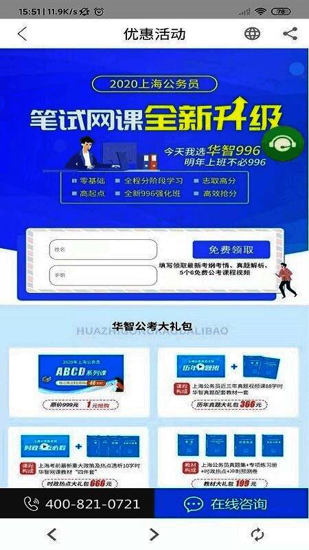 华智公考支持热线咨询,点击热线电话即可进入咨询。