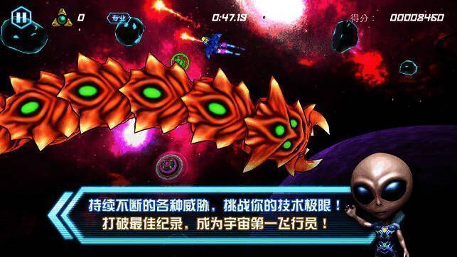 这是一款战斗机甲驾驶类飞行游戏。为了规范星际航行管理,银河联邦划定了数个严苛的太空区域,用于考验宇宙飞行员的驾驶能力。测试区域内危机四伏,乱流巨石、人工智能控制的飞碟以及巨型不明生物等挑战层出不穷。飞行员需凭借高超技艺,不断刷新持续航行时间的纪录。在遥远深邃的太空中,玩家要驾驶强大战机,抵御来自银河系敌人的进攻。游戏拥有华丽的背景模式、庞大的游戏空间以及令人眼花缭乱的战机激光战斗系统,处处彰显精品制作的魅力。
