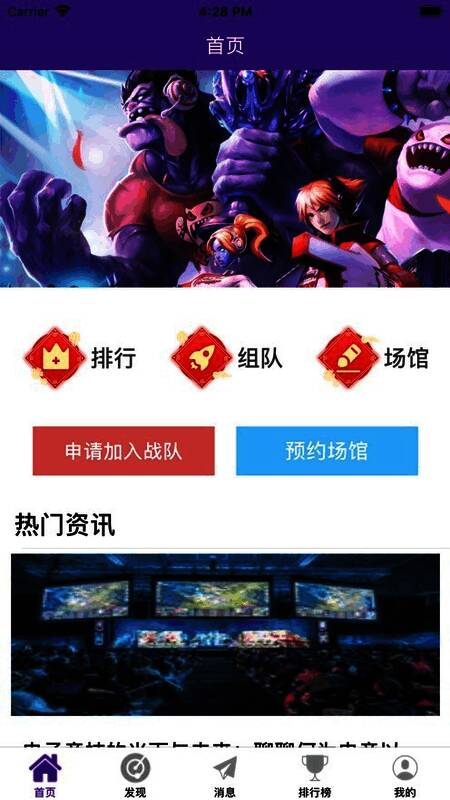 2. 能选择喜欢的战队并在线申请加入,提供热门电竞资讯。