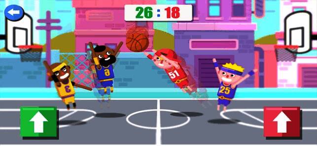 2、二人一组,一场四个玩家,抢到篮球可累计得分,结束后得分高的队伍获胜。