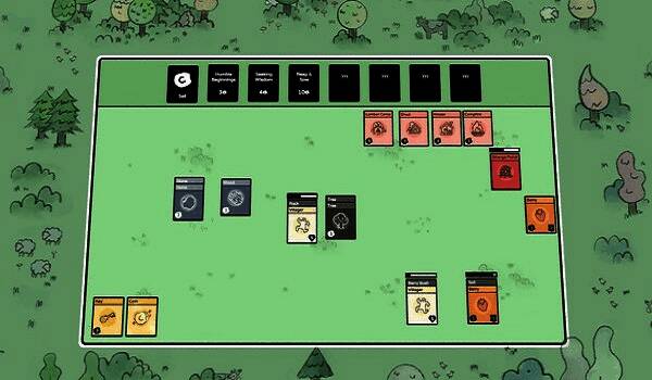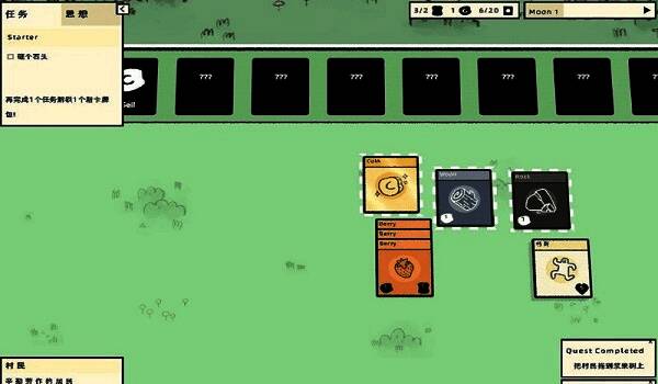 这是一款集建筑、战斗、收集于一体的手绘风卡牌游戏,所有道具以卡牌形式呈现,类似三国杀、英雄杀等。玩家可在“浆果丛”卡牌上放“村民”卡牌,村民自动收集浆果,再将“浆果”卡牌拖到“村民”卡牌上。