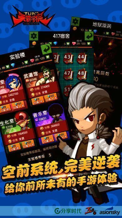 天霸学院是二次元回合制Q版RPG手游,画面是精致的日系卡通风格。其玩法丰富多样,剧情跌宕起伏,能让玩家体验到最爽快的游戏乐趣。该游戏由陈赫担任制作人,包含打地鼠、天天消除、无尽之塔、诡异闯关、探索解谜等百种元素,丰富的技能和真实打击感带来爽快操作与强烈视觉冲击。