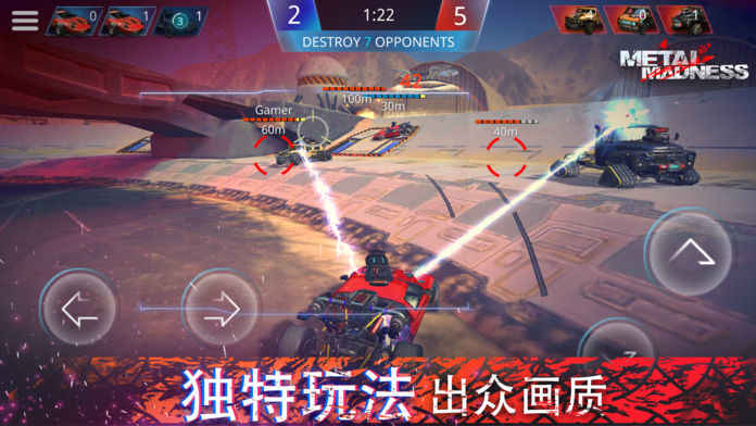 《Metal Madness》是一款别具一格的赛车竞速手游,提供实时多人对战模式。它拥有出色的画质和丰富多样的武器,如喷火器、火箭筒等,能让玩家感受不一样的速度与激情,掌控游戏世界。