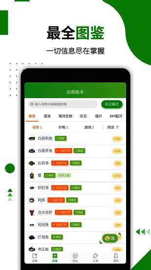 动森助手有多个功能模块满足不同玩家需求。有全面图鉴系统,收录鱼类、昆虫等多种元素,支持多条件筛选,方便玩家查阅定位信息。还提供新人Tips等知识点,助玩家了解游戏机制。
