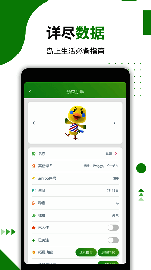 动森助手官方苹果版,是专门为《动物森友会》玩家打造的实用辅助软件。在《动物森友会》里,玩家要在无人岛和可爱动物居民一起生活,建设家园、收集资源、开展DIY创作等。但游戏信息繁杂,新手玩家不易快速掌握。动森助手应运而生,提供丰富游戏信息和资源,助玩家畅享游戏乐趣。