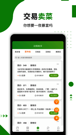 4. 菜市场功能:具备菜市场功能,玩家可寻找高价大头菜等交易物品,浏览交易信息,进行买卖操作,增加游戏互动与社交性。