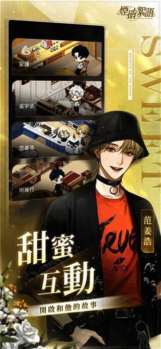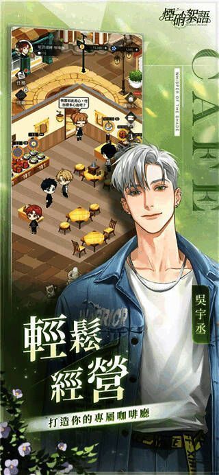 游戏场景精致,咖啡馆的每个角落都充满生活气息,仿佛置身真实咖啡馆。美术风格以暖色调为主,温馨舒适又浪漫。界面UI设计简洁,功能一目了然,操作轻松。角色美术出色,每个男性角色形象独特、气质各异,令人难忘。