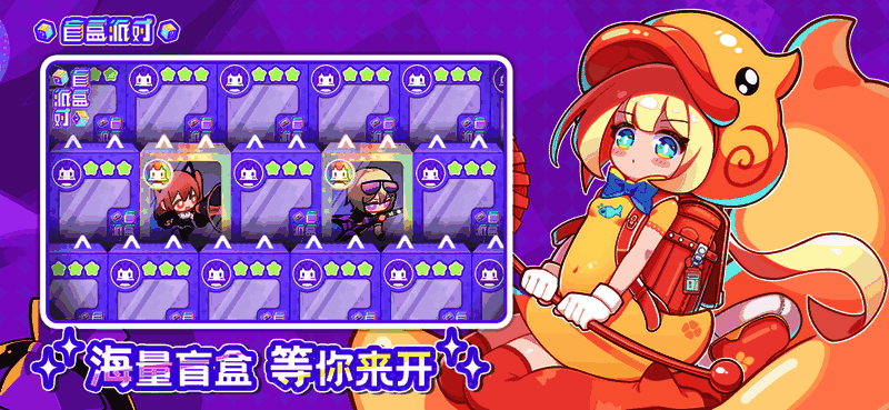3、盲盒开出角色:在奖励盲盒中可开出各种系列角色,会出现在游戏卡池,闯关时能从盲盒中开出。