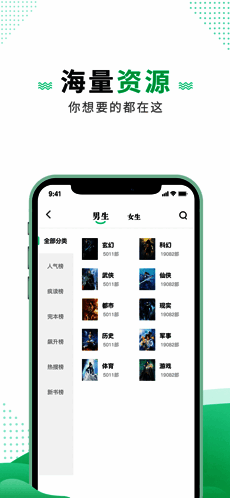 男频、女频涵盖全网书籍,清新天空蓝与浪漫少女粉的界面,带来奇妙视觉享受。