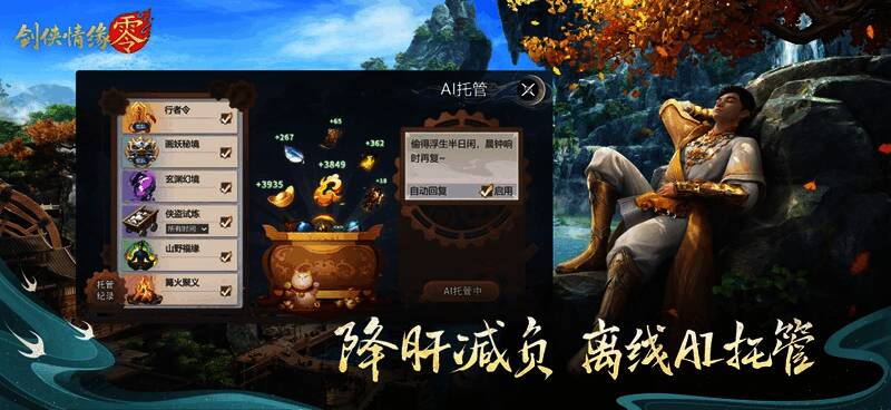 针对传统MMO“肝度”过高的问题,《剑侠情缘·零》引入智能AI托管系统,玩家离线后角色也能自动完成日常任务,上线即可领取收益。此外,游戏继承了剑侠系列一贯的自由交易机制,装备、材料、货币等道具均可自由流通,真正实现“利益归玩家”的理念。