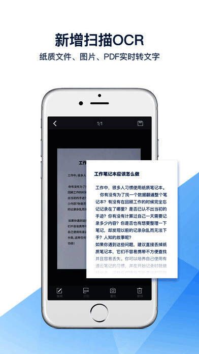 新增扫描 OCR 功能且免费转文字,使用升级后的该功能可将纸质文件、图片、PDF 实时转文字,可用于写论文、作报告、读书、合同电子化等场景,所有资料云端留存。
