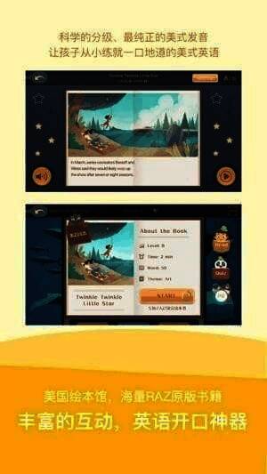 美国绘本馆:内含美国原版RAZ上千本绘本课程。在美国和加拿大有超过1万多所公立学校将RAZ作为阅读教材,在过去二十多年间,RAZ覆盖了全球180多个国家的数百万学生。